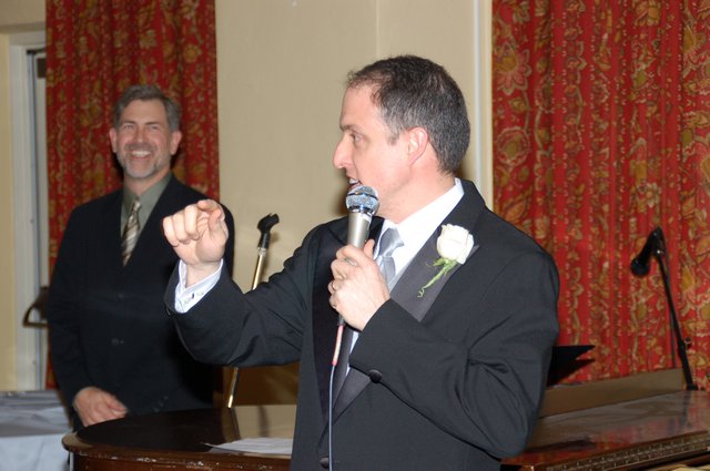 Mark bringing a toast